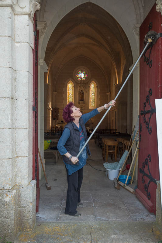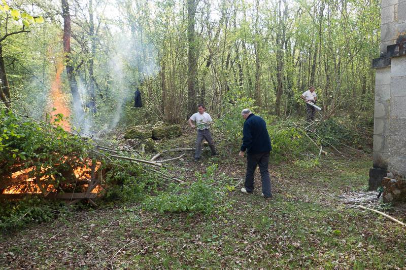 Telles de petites abeilles (alliées traditionnelles de la Chapelle d’Avigny), nous nous sommes activés avec nos balais, chiffons et aspirateur pour donner un grand coup de frais à l’intérieur du bâtiment. Nous nous sommes aussi munis de pinceaux pour de jolies chaises toutes fraîches ou de la tronçonneuse pour élaguer les arbres et débroussailler les alentours.